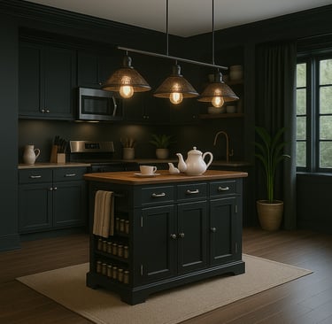 Sentuhan elegan di dapur Anda! Island Table Modern Classic hadir dengan desain timeless, kombinasi hitam & kayu yang mewah, plus penyimpanan super praktis.