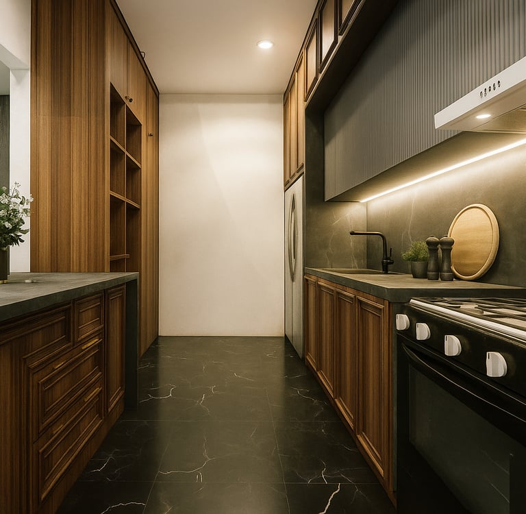 Meski tampil sederhana, dapur minimalis dirancang dengan perencanaan matang. Setiap laci, kabinet, dan rak memiliki fungsi spesifik, sehingga kegiatan memasak menjadi lebih efisien. Ini adalah keunggulan dapur modern estetika dan fungsi berjalan beriringan.